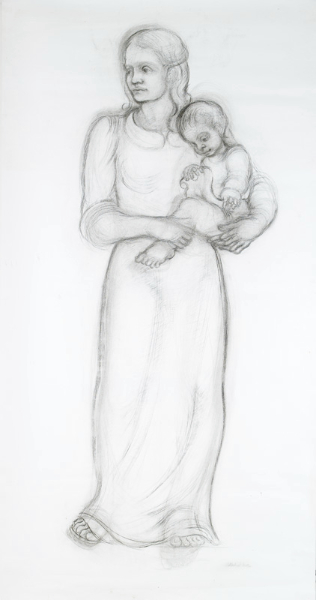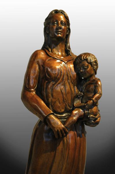 A new church was designed for the Parish at St. Bernard’s, Glengormley, Belfast, Northern Ireland. The architects, Dempsey Architects, commissioned me on behalf of their client to execute a mother and child in bronze for the main body of the church. The initial drawings were for a seated mother and child, 1.8 metres in height to be sculpted in timber. The final design, however, is of a standing mother holding her child, cast in bronze and measures 1.68 meters in height. This sculpture was cast in the foundry CAST LTD, South Brown Street, Dublin.
