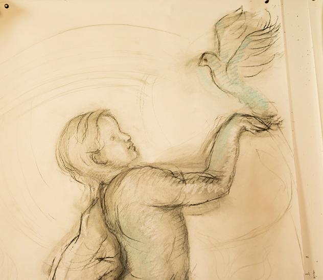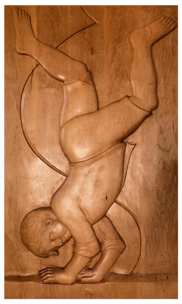 It will be complemented with the relief of a boy standing on his hands, (please see below) sculpted in Maple and will be framed with Cherry Wood. This will be positioned in the reception lobby of the school.